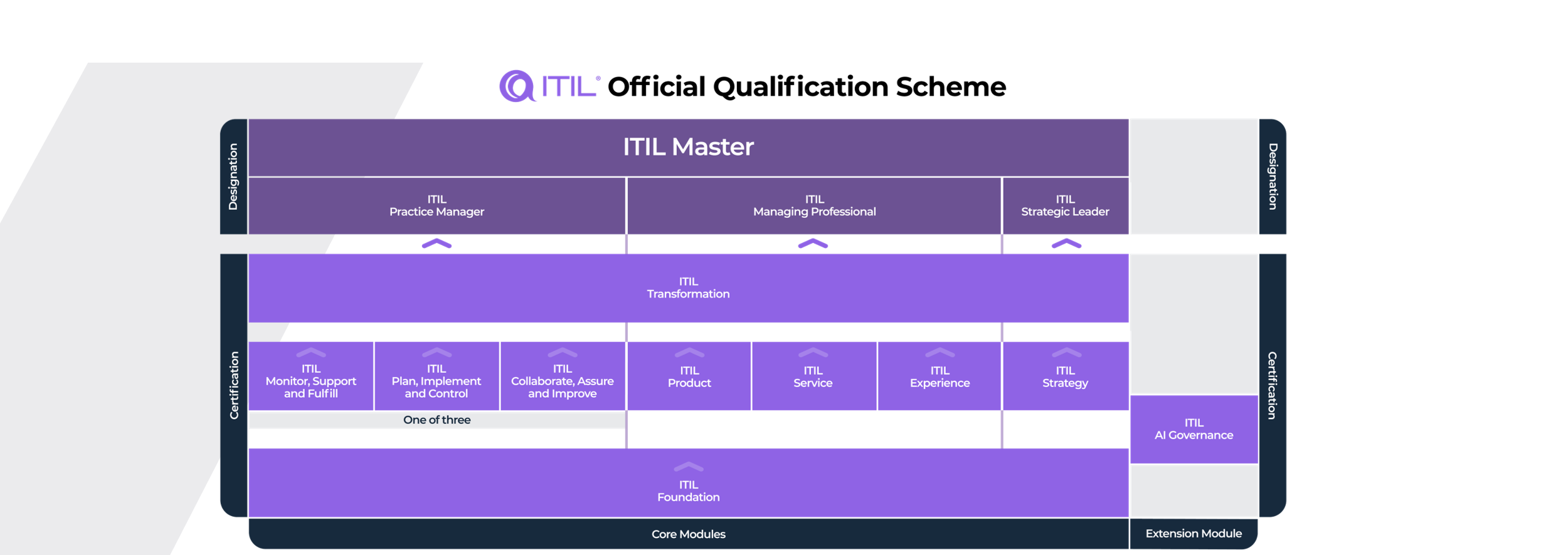ITIL legt neue Schwerpunkte: ein durchgängiger Lifecycle, Experience als eigenständiger Fokus, Transformation als Umsetzungsrahmen sowie AI Governance als separates Modul.